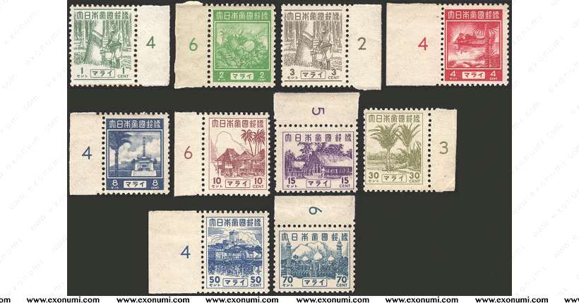 Japanese Occupation of Malaya - Definitive Series with Numbered Margins (1943)