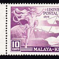 On October 9, 1949, the Bureau of Posts issued a set of three stamps and a souvenir sheet to commemorate the 75th anniversary of the Universal Postal Union.