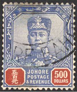 Sultanate of Johore $500 (1926) Fiscally Used & Repaired