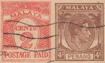 Malaya : Penang - 4¢ King George VI + 2¢ Imprint Uprated, Used in 1954