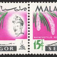 Modern Malaysia's first definitive stamps. The stamps featured orchids for the State low values and birds for the Malaysia high values. Each State had its own set, identical with the exception of the State name and Rulers portrait or State crest as applicable. The eight high values were printed in portrait format, featuring Malaysian birds, and had 'MALAYSIA' printed on them in place of State names.