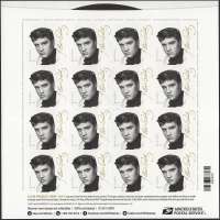 An image of Presley shot by photographer Alfred Wertheimer and the logo for the Music Icons series appear on the reverse side. Antonio Alcalá served as the art director and designed the stamp sheet with Leslie Badani.