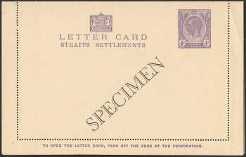 Straits Settlements : King George V - Letter Card (1928) Overprinted SPECIMEN [Quite Scarce]