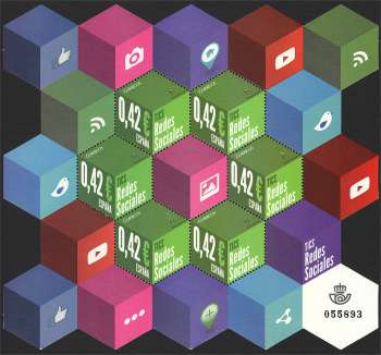 Information and Communication Technologies (ICTs) and their integration into Social Networks are the motif of this mini-sheet, comprising six hexagonal stamps and a series of pictograms with no postal value, representing the wide range of social relationships that can be maintained online.
