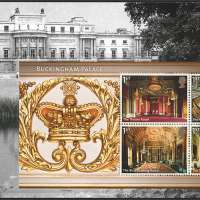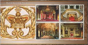 The Miniature Sheet reveals the grandeur and elegance to be found within Buckingham Palace, represented by superb photographs of The Throne Room, The Blue Drawing Room, The Grand Staircase and The Green Drawing Room.