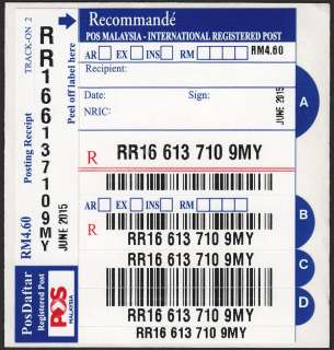 Malaysia PosDaftar Track-On 2 (Blue : Recommandé - International Registered Post) June 2015