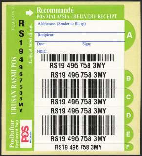 Malaysia PosDaftar Track-On 4 (Green : Pos Malaysia Delivery Receipt) 2015 New Logo