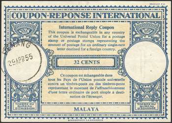 Malaya - International Reply Coupon : London Design XVI-ua (1955) Penang