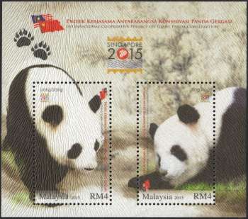 Malaysia - Singapore 2015 World Stamp Exhibition : Overprinted on International Cooperative Project On Giant Panda (2015)