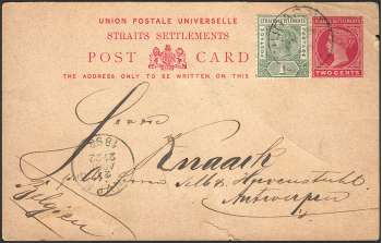 Straits Settlements - Queen Victoria 2¢ + 1¢ Uprated, Used in 1898 to Belgium