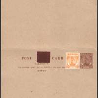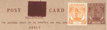 Malaya : Selangor - Postcard with Reply : Portrait of Sultan Hisamuddin Alam Shah, Uprated with 2¢ Postage Stamp, Coat-of-Arms Blocked (1951)