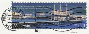 Stamp showing Sultan Abdul Halim Mu'adzam Shah Bridge, Penang which was issued in December 2014.
