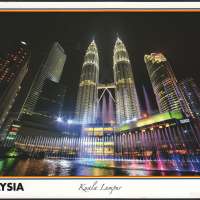 Postcard of Kuala Lumpur, Malaysia showing Petronas Twin Towers at night.