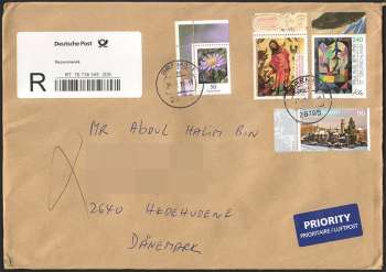 Denmark - Registered Mail from Germany (2016) with Stamps