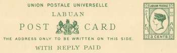 British Colony of Labuan - Portrait of Queen Victoria : 3¢ + 3¢ Reply (1893) MNH