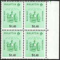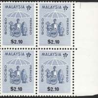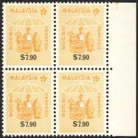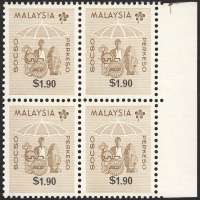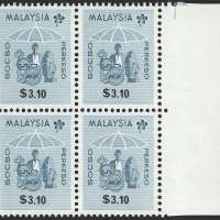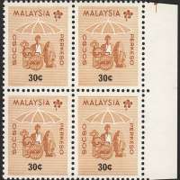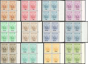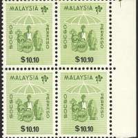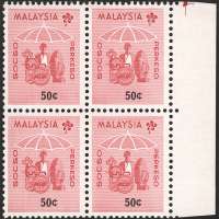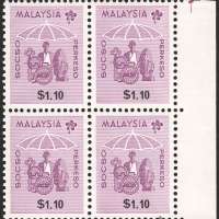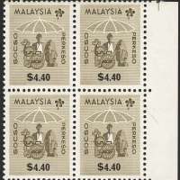 Malaysia - SOCSO Perkeso Revenue Stamps : Block of 4 (1973 London Print) Complete 12 Values