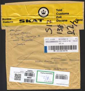 Denmark - Registered Mail from Serbia (2016) Opened by Custom