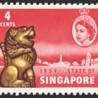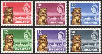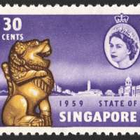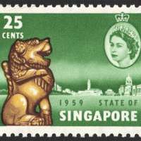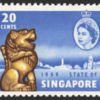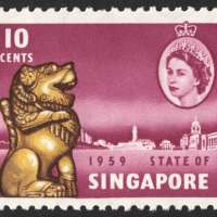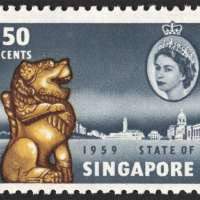 Stamps were issued to commemorate the new constitution that saw Singapore turning from a British colony to that of a state. Design showing Singapore Lion and Administrative Centre.