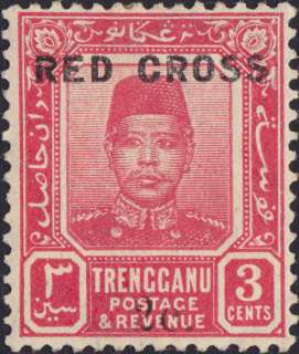 Sultanate of Terengganu - Overprinted & Surcharged : RED CROSS 2¢ on 3¢