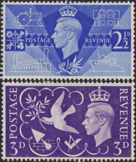 Since England first issued postage stamps—the famous “Penny Blacks”—in 1840, only five special issues have ever been printed. It is singularly gratifying to the Fraternity that the “Victory Issue” put on sale last June in Gt. Britain contains much of masonic interest.