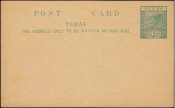 POST CARD PERAK THE ADDRESS ONLY TO BE WRITTEN ON THIS SIDE. PERAK POSTAGE & REVENUE 1¢