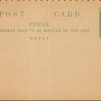 POST CARD PERAK THE ADDRESS ONLY TO BE WRITTEN ON THIS SIDE. PERAK POSTAGE & REVENUE 1¢