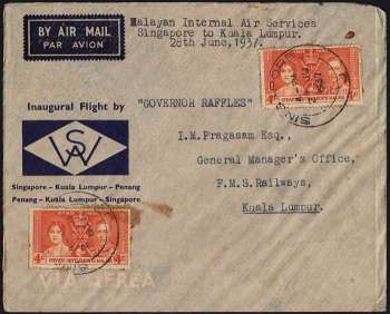 Inaugural Internal Air Services 1937 Wearne's Air Services - FFC from Singapore to Kuala Lumpur, FMS