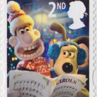 Wallace and Gromit go carol singing on the 2nd class stamp and dress the Christmas tree on the 60p stamp.