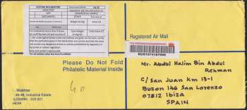 Spain - Registered Cover from India (2014)