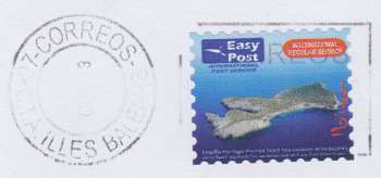 A philatelic cover was made and a private postal sticker of Easy Post (private postal service) BUT was posted into Correos mail pillar.