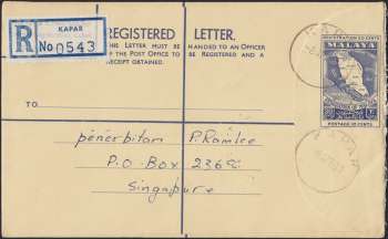 Federation of Malaya - Registered Letter (G Size) - Kapar to Singapore (1961)