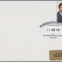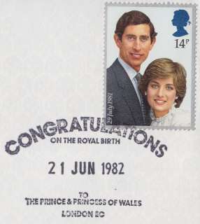 A cover using Prince Charles & Lady Diana's wedding commemorative stamp to commemorate the birth of Prince William (William Arthur Philip Louis) in 1982.