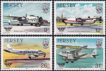 This set depicts four aircraft types that contributed significantly to the development of Jersey aviation during the period of outstanding growth following World War II.