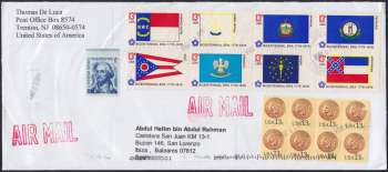Spain - Postal Cover from USA (2014) with a lot of stamps