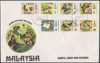 On 1 February 1971 new sets of low value stamps were issued for use in the individual States, replacing the previous Birds and Orchids stamp issue. The new stamps featured Malaysian butterflies on all values and were printed by Bradbury Wilkinson.