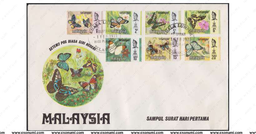 Malaysia : Selangor - State Definitive Series : Butterflies (1971) FDC