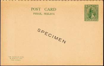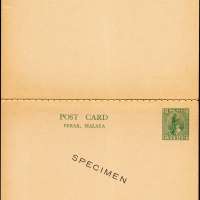 Sultanate of Perak - Postcard 2¢ + 2¢ Reply (1938) SPECIMEN