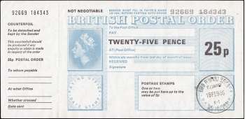 British Postal Order : 25 pence - Issued in Malaysia 1986