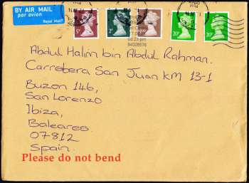 Spain - Postal Cover from Great Britain (2014)