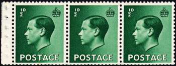 Great Britain - King Edward VIII : ½d Booklet Strip of 3 & Watermark Inverted (1936)