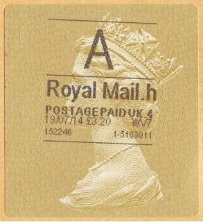From 26th September 2011, a change in software to distinguish the VAT status of transactions resulted in additional characters being added to each label. These consist of lower-case letter after "Royal Mail", and a number after "POSTAGE PAID UK".