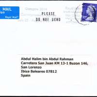 Spain - Postal Cover from Great Britain (2014) Postmark Glasgow 2014 + Handstamp
