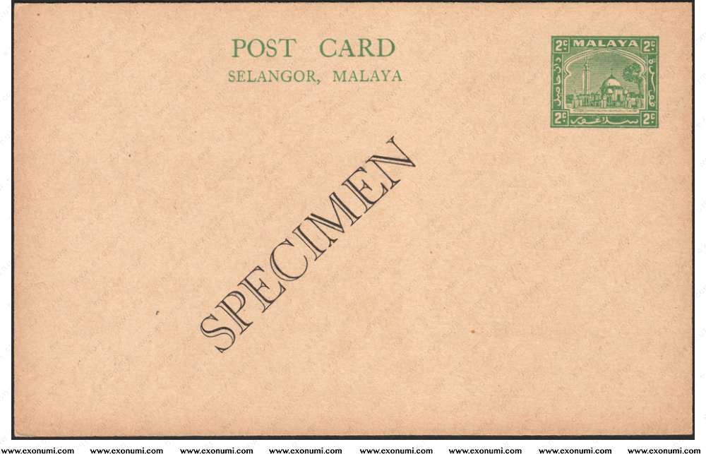 Malaya : Selangor - Postcard 2¢ (1936) Mosque of Klang [SPECIMEN]