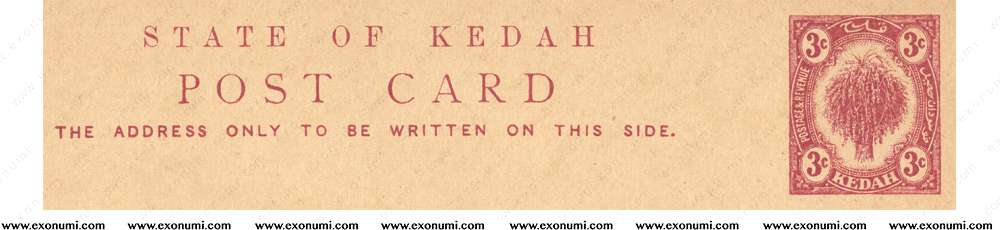 Sultanate of Kedah - Postcard: Sheaf of Rice 3¢ (1912)