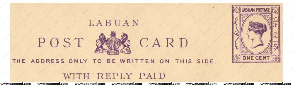 British Colony of Labuan - Postcard 1¢ + 1¢ Reply (1893)