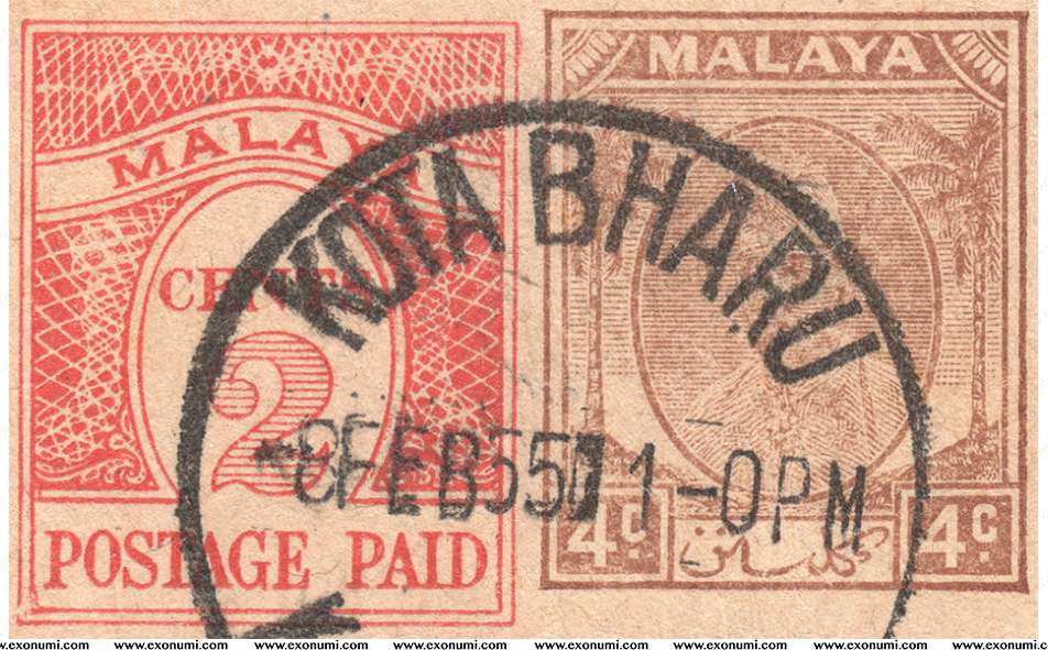 Malaya : Kelantan - 4¢ Postcard with Portrait of Sultan Ibrahim + 2¢ Uprated Imprint, Used in 1955