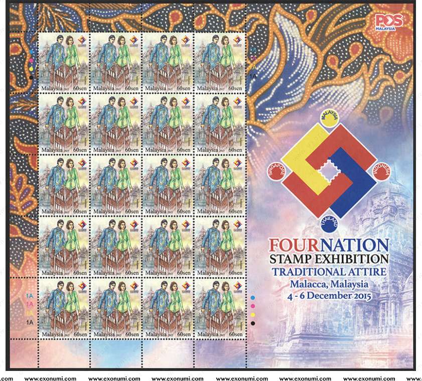 Malaysia - Four Nation Stamp Exhibition : Traditional Attire (2015) Sheet MNH