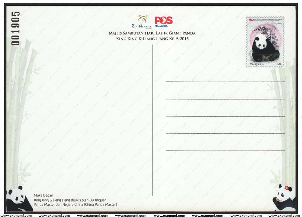 Malaysia - Panda Postal Card - Giant Pandas 9th Birthday Celebration (2015) 001905 MNH