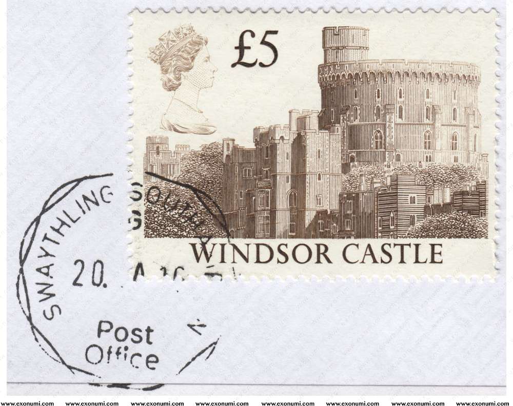 Denmark - Registered Mail from UK with 'Pre-cancelled' Horizon Label & £5 Castle Series (2016)