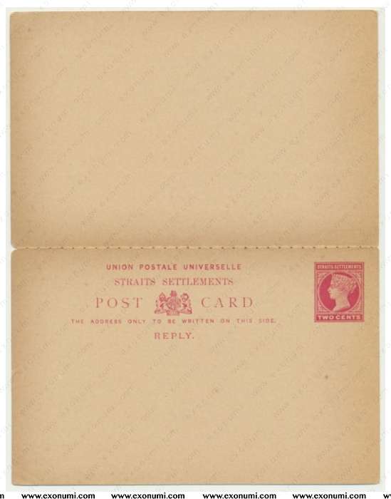 Straits Settlements Post Card with Reply - Postal Stationery Prepaid 2 cents (1893)